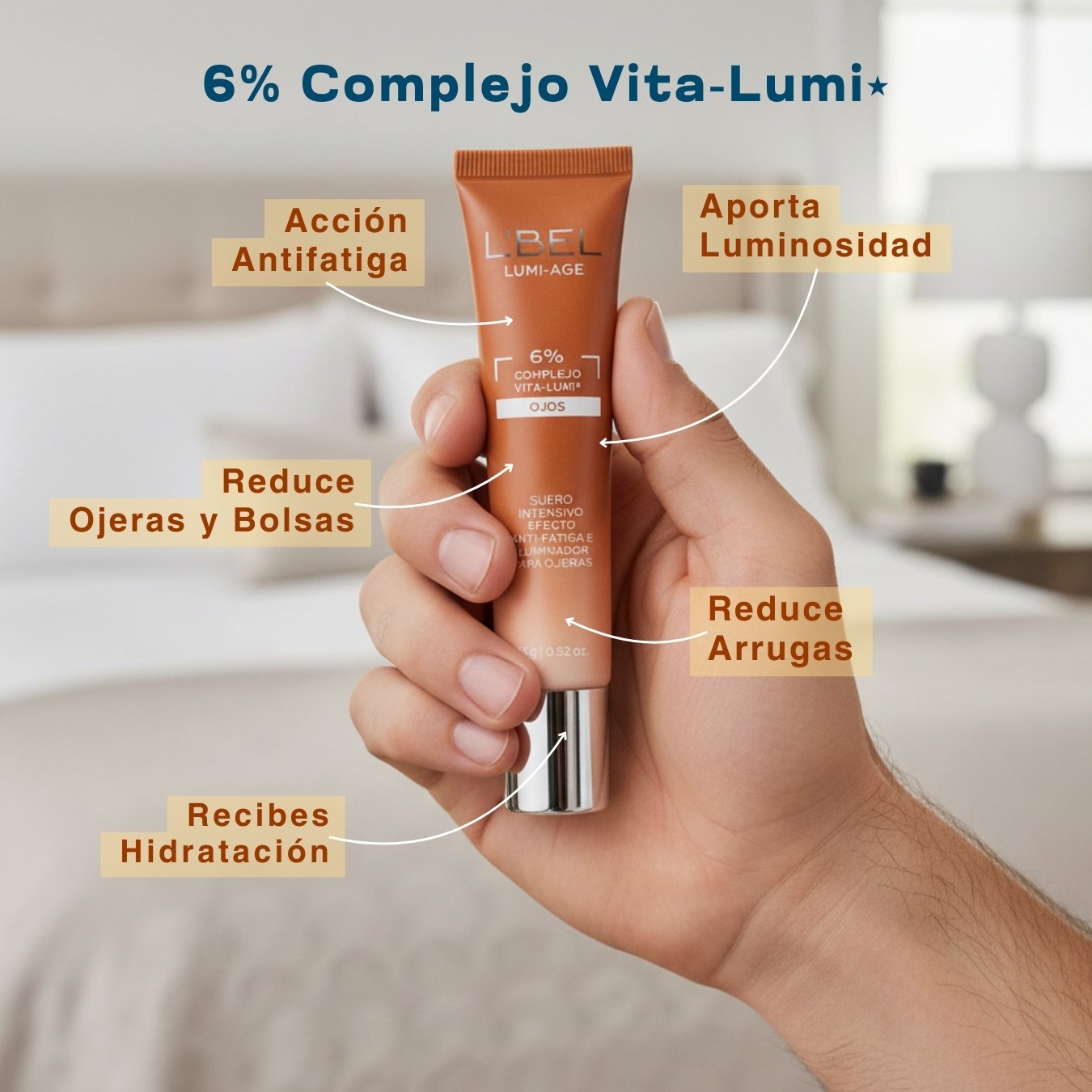 LUMI AGE AM: Es un contorno de ojos Iluminador diseñado específicamente para atacar los tres enemigos de tu mirada ganadora: